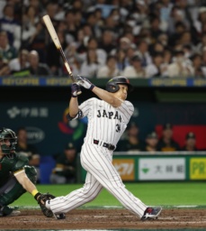 0―0の六回にミスから1点を先取されたが、七回に吉田(レッドソックス)が2試合連続本塁打となる逆転2ラン。八回は代打佐藤(阪神)の適時二塁打などで2点を加えた。先発の菅野(ロッキーズ)は4回無失点で降板。継投で逃げ切り、日本は前回大会からの連勝を10に伸ばした。