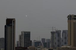 上空にイランのミサイルが探知されたイスラエル中部テルアビブ=1日(ゲッティ=共同)