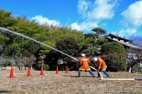 群馬県の世界文化遺産、高山社跡(藤岡市高山)の防火訓練が27日、同所で行われた。市職員や消防関係者、住民ら50人が万一の出火に備え連携を確認した。