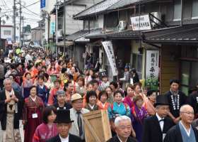 「楫取夫妻」も笑顔で行進 富岡製糸場工女まつり