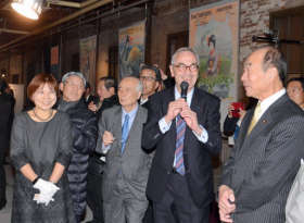 群馬県富岡市は13日、明治大と連携した企画展「明治大学クリスチャン・ポラックコレクション展―資料が語る富岡製糸場の日仏交流史」(14日~2月12日)のオープニング式典と内覧会を、富岡製糸場内の東置繭所で開いた。展示資料を収集した同大客員教授で日仏交流史研究家のクリスチャン・ポラックさんが関係者約50人に、県内初公開の製糸場関連資料を説明した。