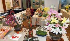 群馬県立日本絹の里の企画展「まゆクラフトと絹の作品展」が2月12日まで、高崎市金古町の同館で開かれている。繭を使った色鮮やかな花や人形、絹織物など338点が、来場者を楽しませている=