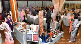 県内16団体が出展し、絹製品の魅力を紹介。透明感のあるスカーフや手描き友禅、和装小物など多彩な商品を展示販売。無料の着付け体験も行われ、あでやかな着物に身を包んだ来場者が会場に花を添えている。