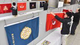 群馬県の本年度の新規事業「絹文化継承プロジェクト」に参加した小学校44校の校旗が30、31の両日、県庁県民ホールに展示される。