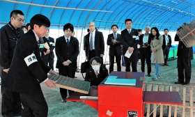 GM蚕の飼育実験を行う施設を見学する参加者
