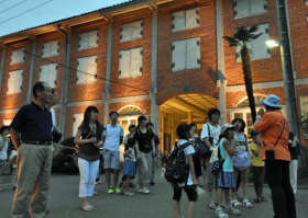製糸場“夜の顔” 家族連れが満喫 富岡でナイトツアー