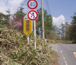 | 沼田市の標識が新たに掲げられた峠付近。標高は1000メートル超 |