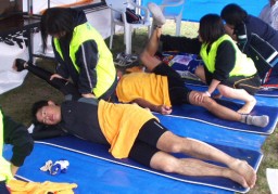 | 専門学校生のスポーツマッサージを受ける参加者 |