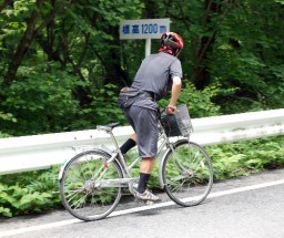 旧料金所を過ぎ、箕輪までは道路が直線的で、こう配がきつい。立ちこぎの連続となる。息が上がらないように、かつ、倒れないぎりぎりの低速でペダルを踏む。