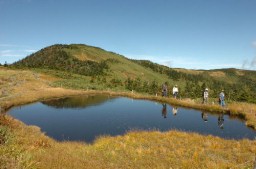| 会津駒ケ岳・駒の大池付近を現地調査する検討会メンバー=福島・桧枝岐村 |