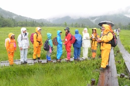 家族4人とも初めての尾瀬だったという山崎和(のどか)君(前橋天神小5年)は「授業で尾瀬を勉強し、来たいと思っていた。いろいろな植物が見られて楽しかった」と雨の降るあいにくの天気にも楽しんだ様子。父の勝さん(38)も「尾瀬を守りたいという多くの人の愛情を感じることができた」と話していた。