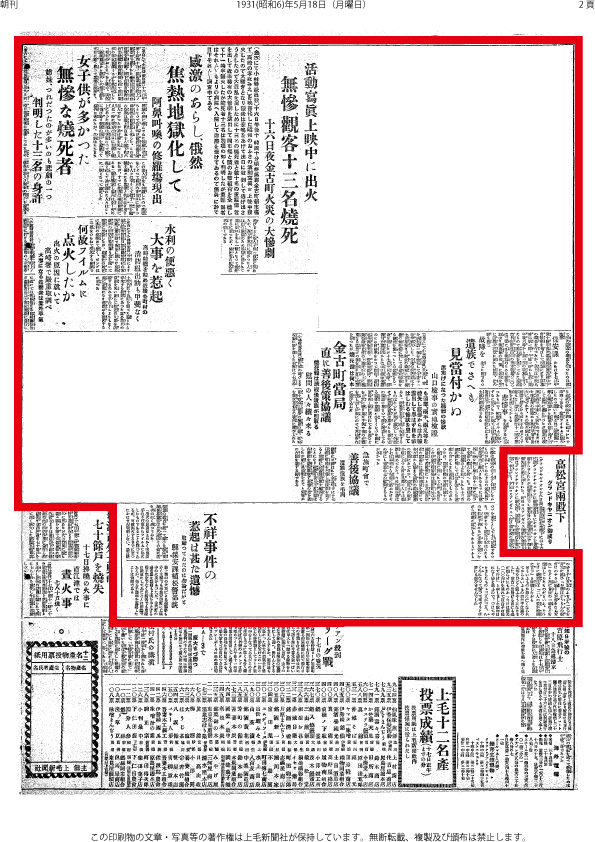 活動寫眞上映中に出火 1931(昭和6)年5月18日