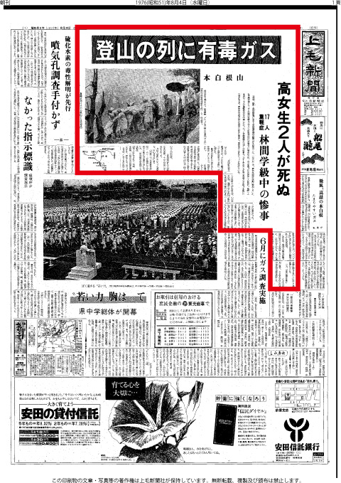 本白根高女生2人死亡 1976(昭和51)年8月4日