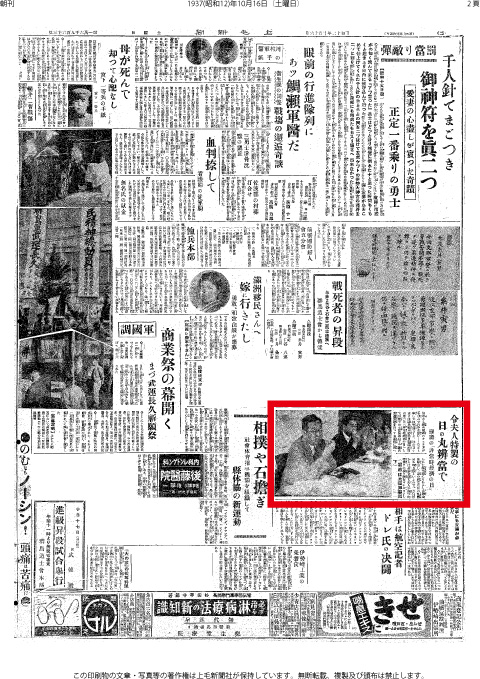令夫人特製の日の丸辨當で 1937(昭和12)年10月16日