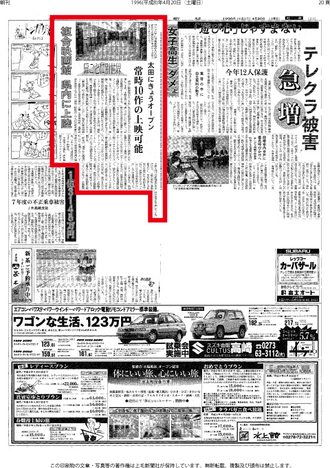 複合映画館 県内に上陸 1996(平成8)年4月20日