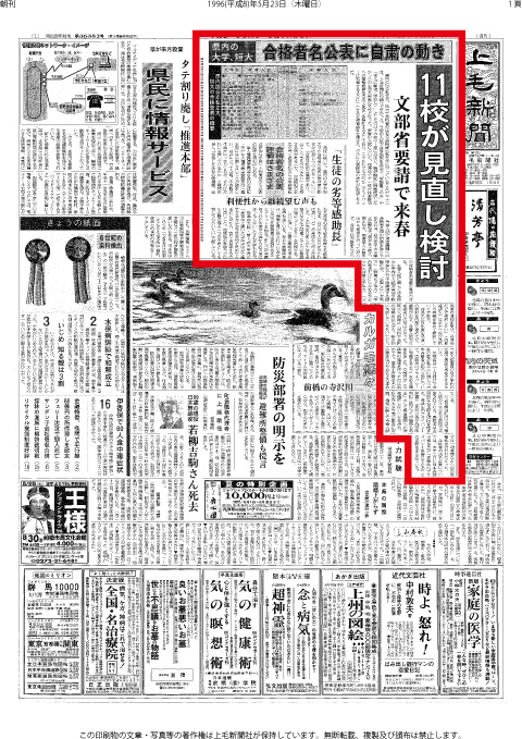 合格者名公表に自粛の動き 1996(平成8)年5月23日