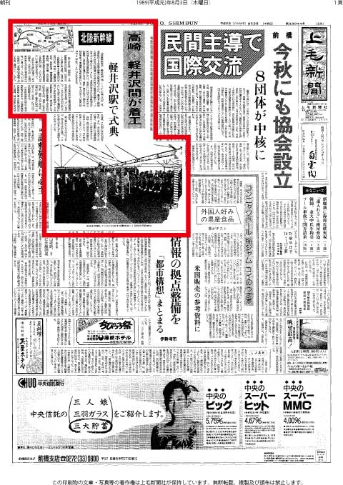 廃止が決まった信越本線横川-軽井沢間の代替輸送問題が未決着のままで、起工祝賀会に出席した群馬県企画部長は「(代替輸送問題にも)全力で当たりたい」と、大歓迎ムードの長野県側とは一線を画したと報じた。首都圏と北陸を直結する北陸新幹線は1997(平成9)年10月に長野まで先行開業し、2015(平成27)年3月に金沢に延伸した。