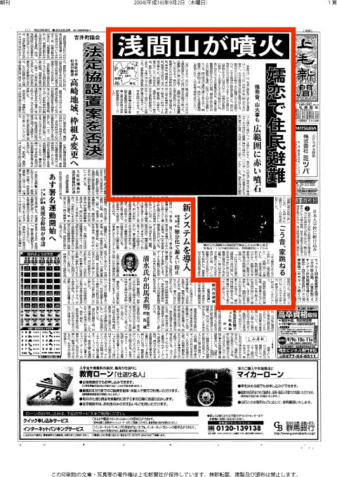 浅間山の中規模噴火は1983年4月以来、21年ぶり。火口近くには赤い噴石が落下、中腹では山火事が発生し、広い範囲で降灰が確認された。嬬恋村では地響きのようなごう音が続いたとされ、村の避難所には60人以上が避難した。前橋の平野部などでも多くの県民が噴火を体感した。8月31日午後から火山性地震の発生回数が増えていた。