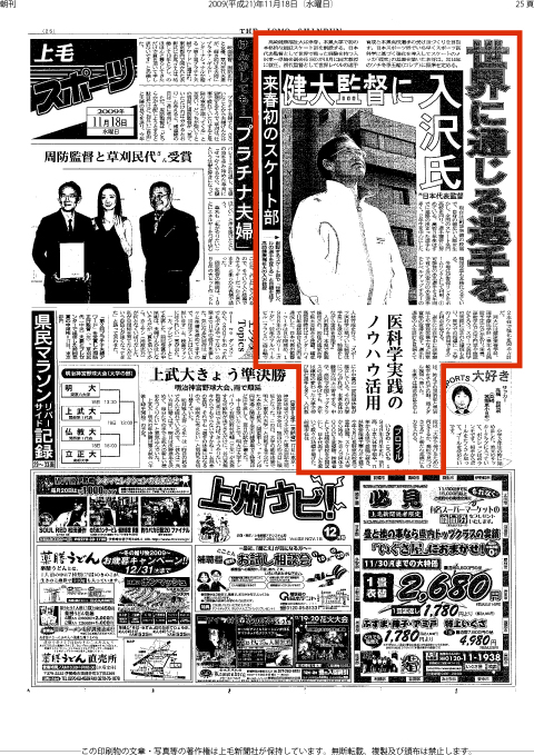 嬬恋西中、嬬恋高を強豪校に育て、教え子の黒岩彰と黒岩敏幸を五輪メダリストへと導いた名将が群馬県初の大学スケート部監督に就任した。スポーツ医科学をベースにしたトレーニングに力を入れ、現在指導する佐藤綾乃選手が今年の平昌五輪スピードスケート女子団体追い抜きで金メダルを獲得。創部8年でメダリストを輩出する快挙を成し遂げた。