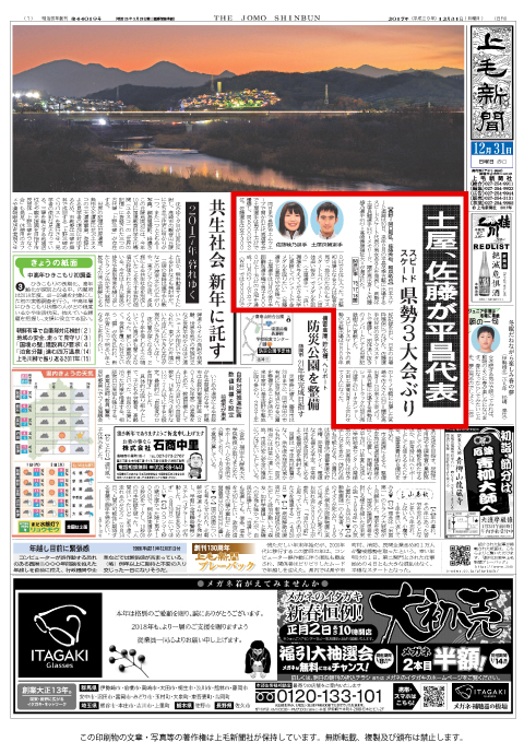 土屋、佐藤が平昌代表 2017(平成29)年12月31日