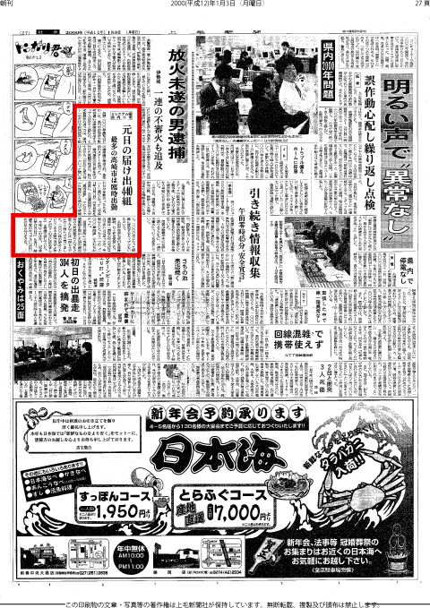 20世紀最後となったこの年、人生の記念日となる結婚を「2000年1月1日」にしようというカップルが多かった。県内最多の105件の婚姻届を受け付けた高崎市役所は事前の問い合わせが多数あったため、市民課職員3人が“臨時出勤”。中には12月31日深夜から窓口で待機し、2000年になった瞬間に提出するカップルもいたという。